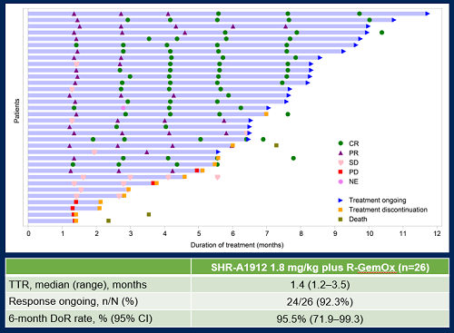 剂量递增阶段结果显示,1.8 mg/kg为SHR-A1912与R-GemOx联合治疗的RP2D。